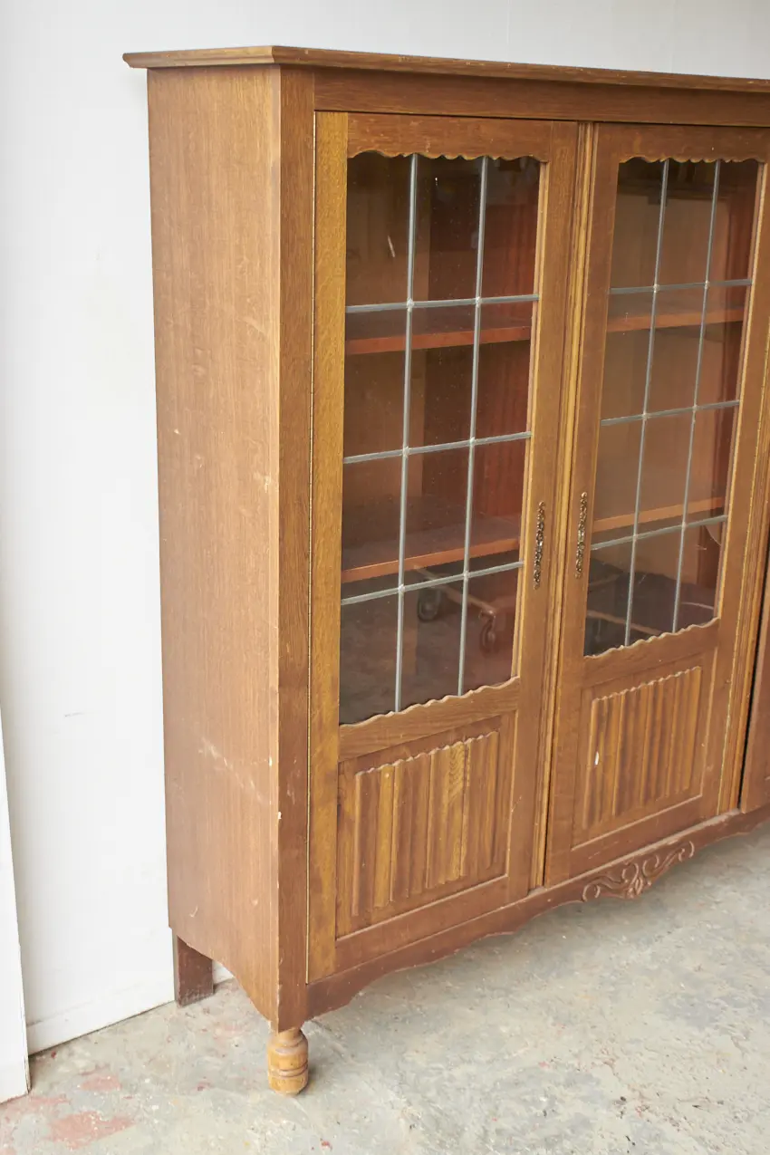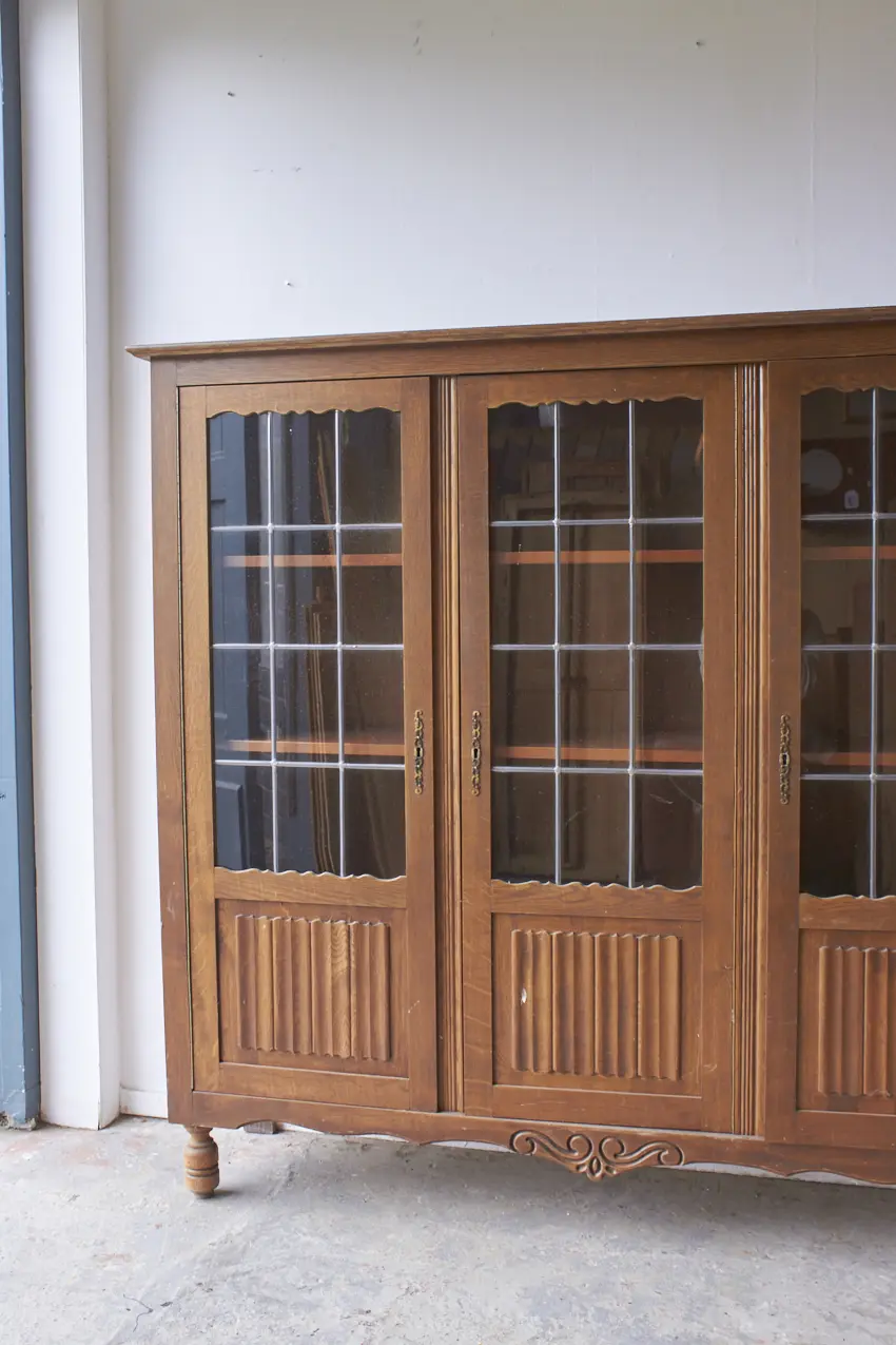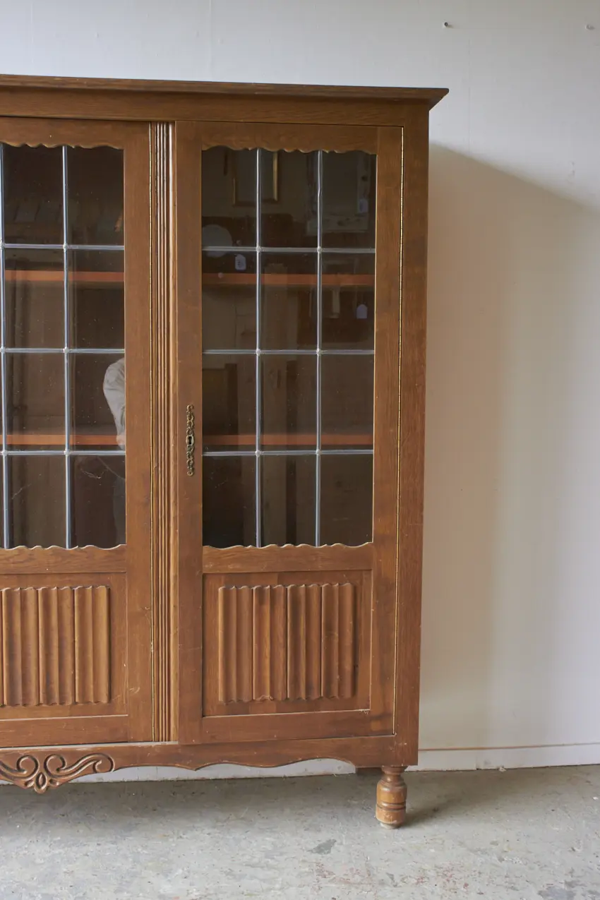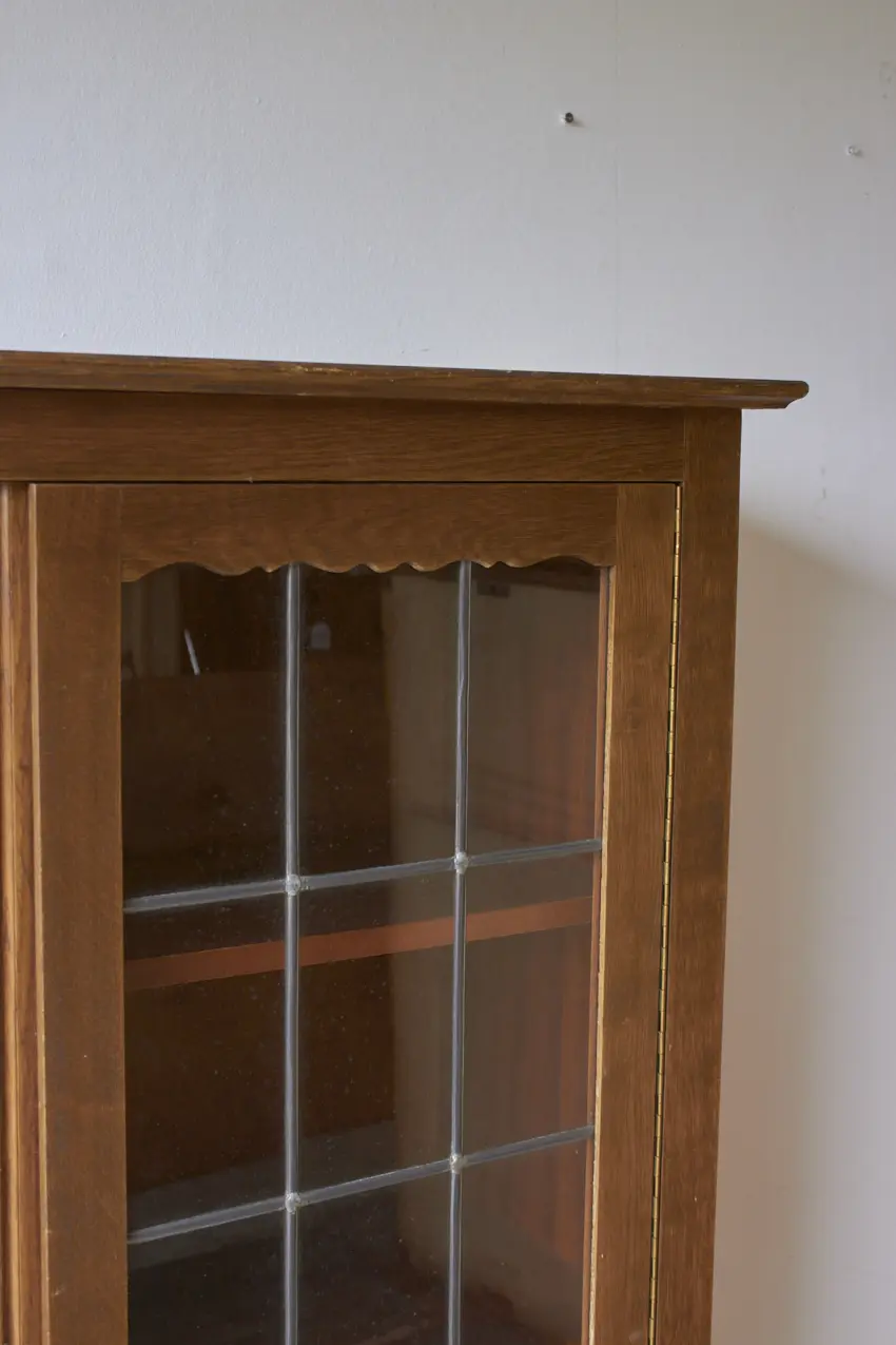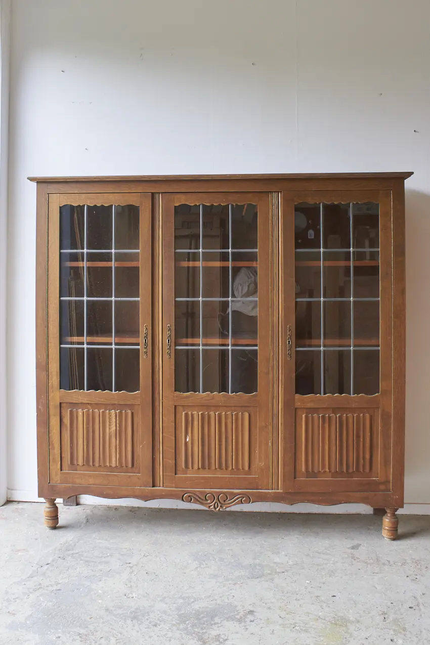 Wat een leuke vitrinekast! Deze kast is perfect om mooi servies, boeken of andere schatten in uit te stallen. We kunnen eventueel het glas in lood vervangen voor houten panelen. Deze vitrinekast is helemaal naar jouw wens samen te stellen.