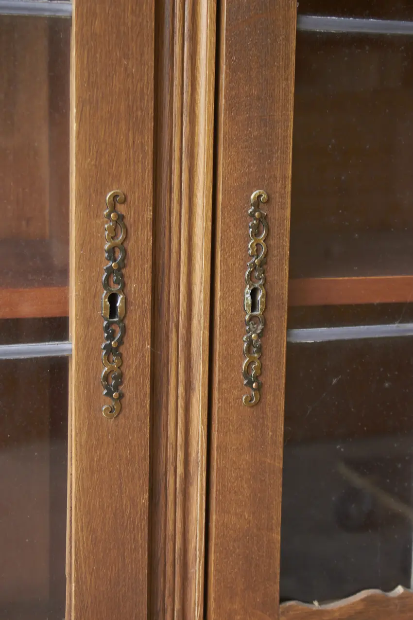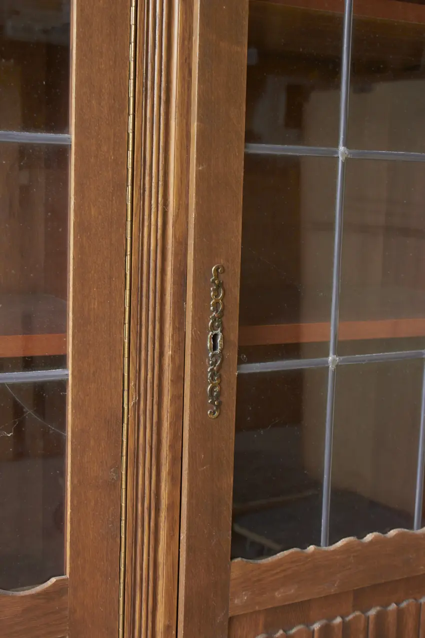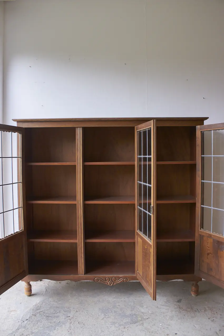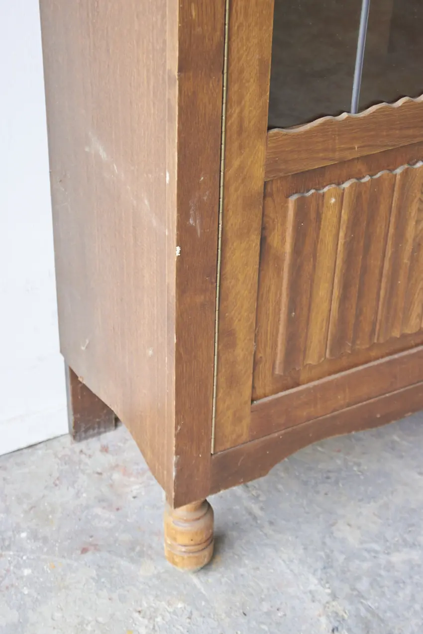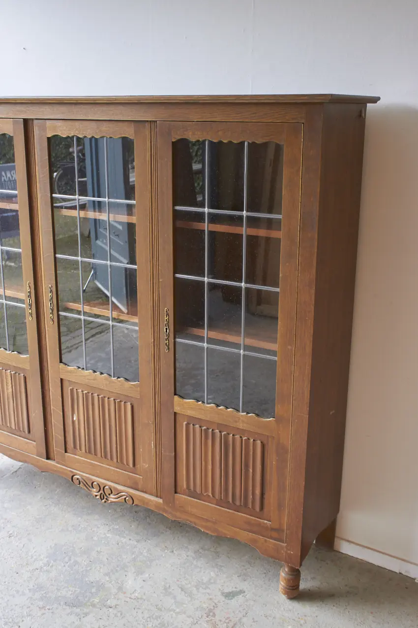 Wat een leuke vitrinekast! Deze kast is perfect om mooi servies, boeken of andere schatten in uit te stallen. We kunnen eventueel het glas in lood vervangen voor houten panelen. Deze vitrinekast is helemaal naar jouw wens samen te stellen.