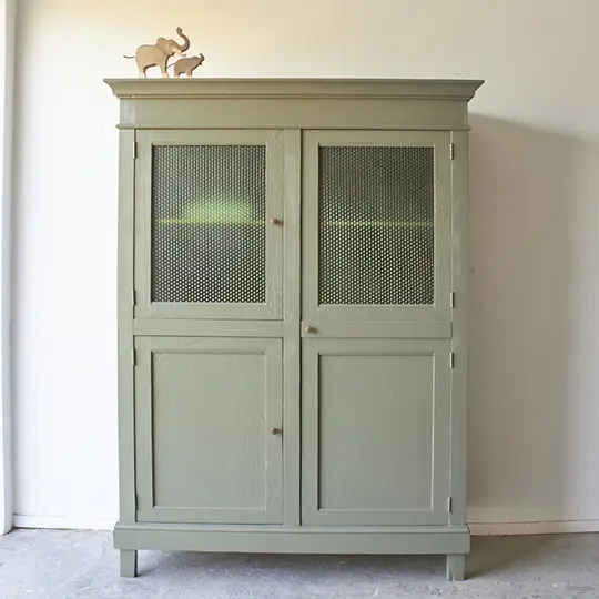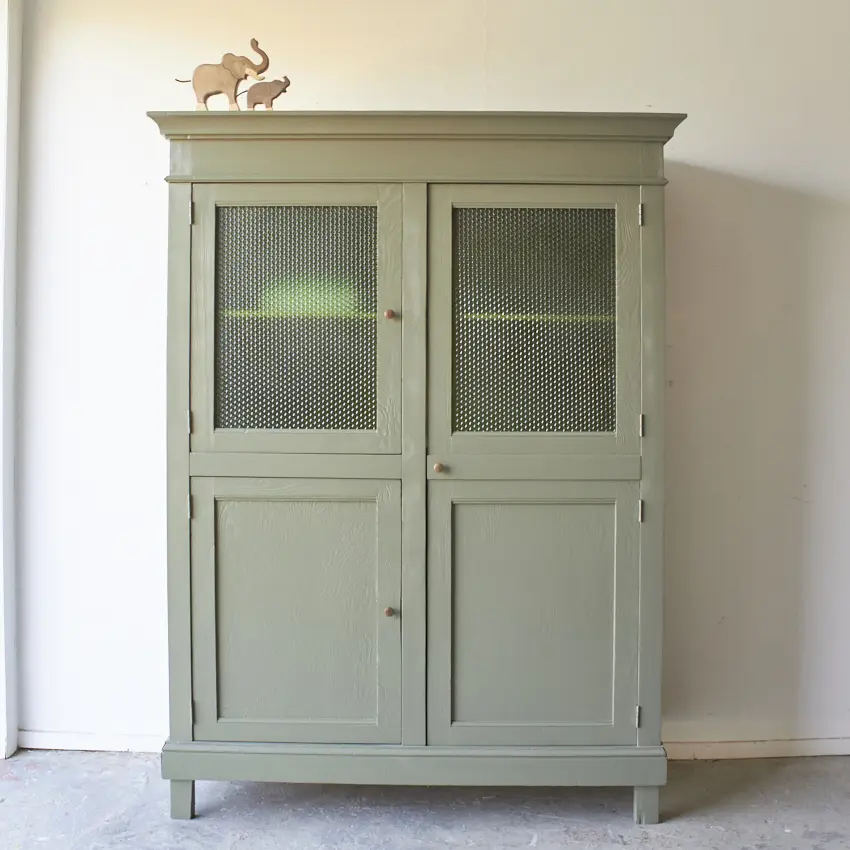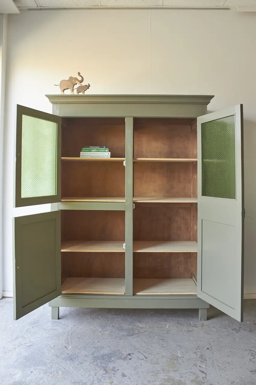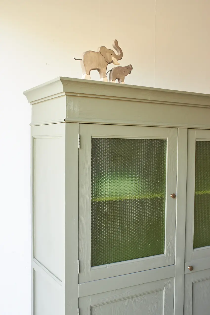 In combinatie met het glas leek het ons heel tof de kast in onze kleur ‘Rozemarijn‘ te schilderen. En het resultaat mag er zijn! Wat een fantastische kast is dit geworden. Klaar voor gebruik!