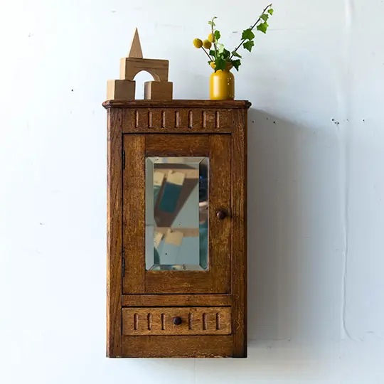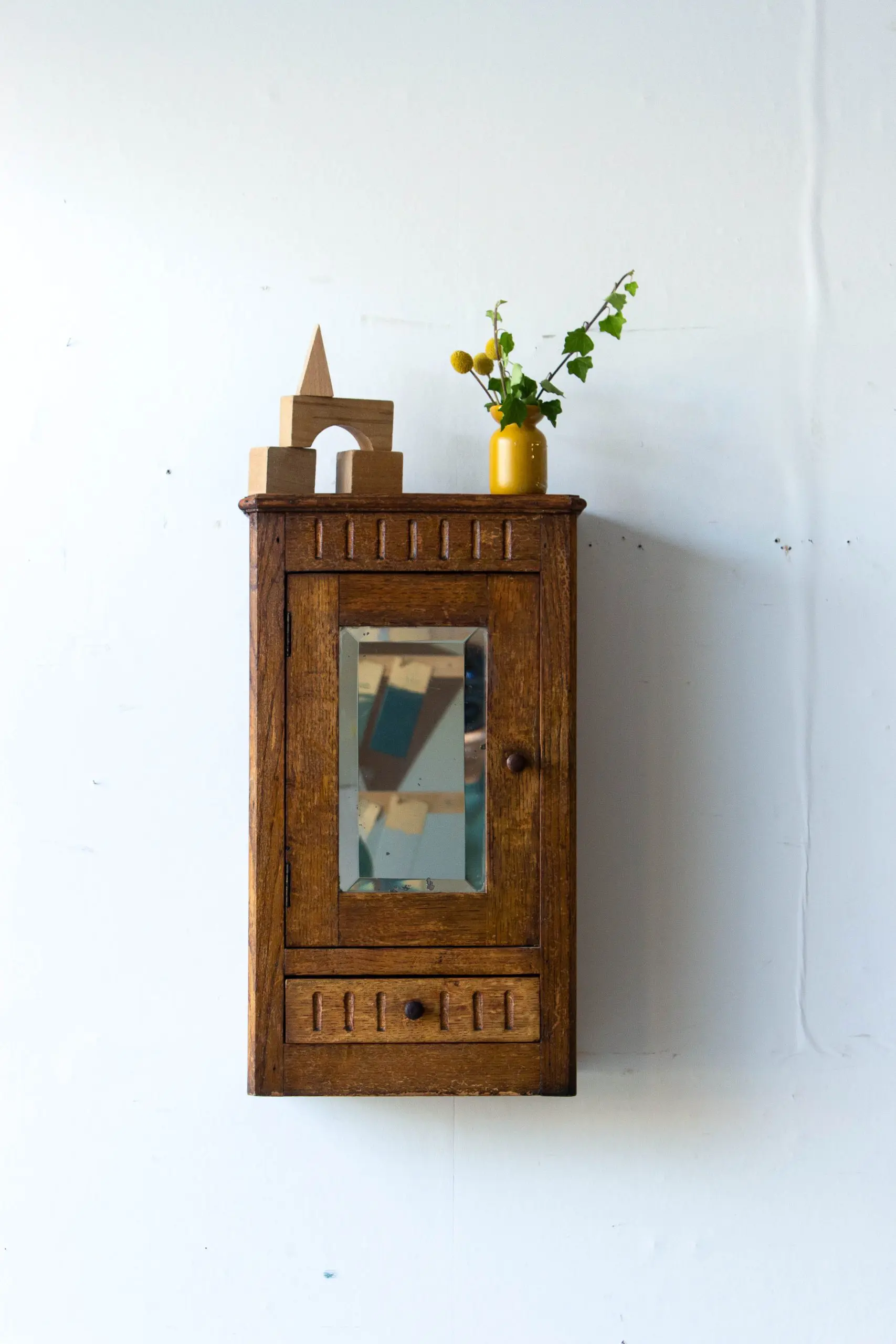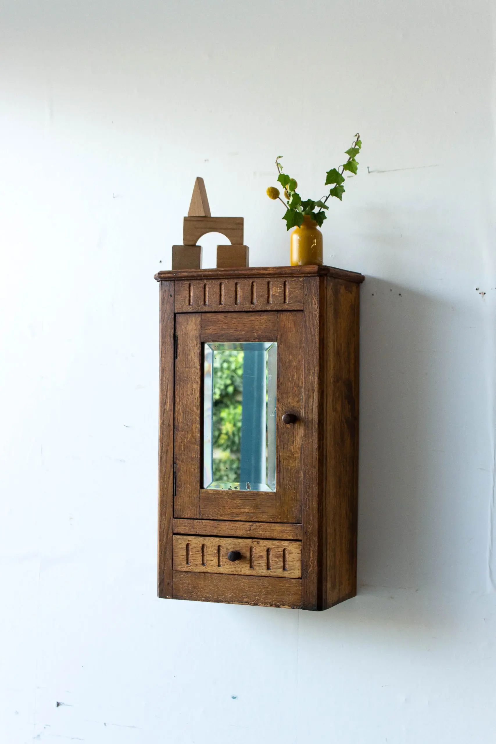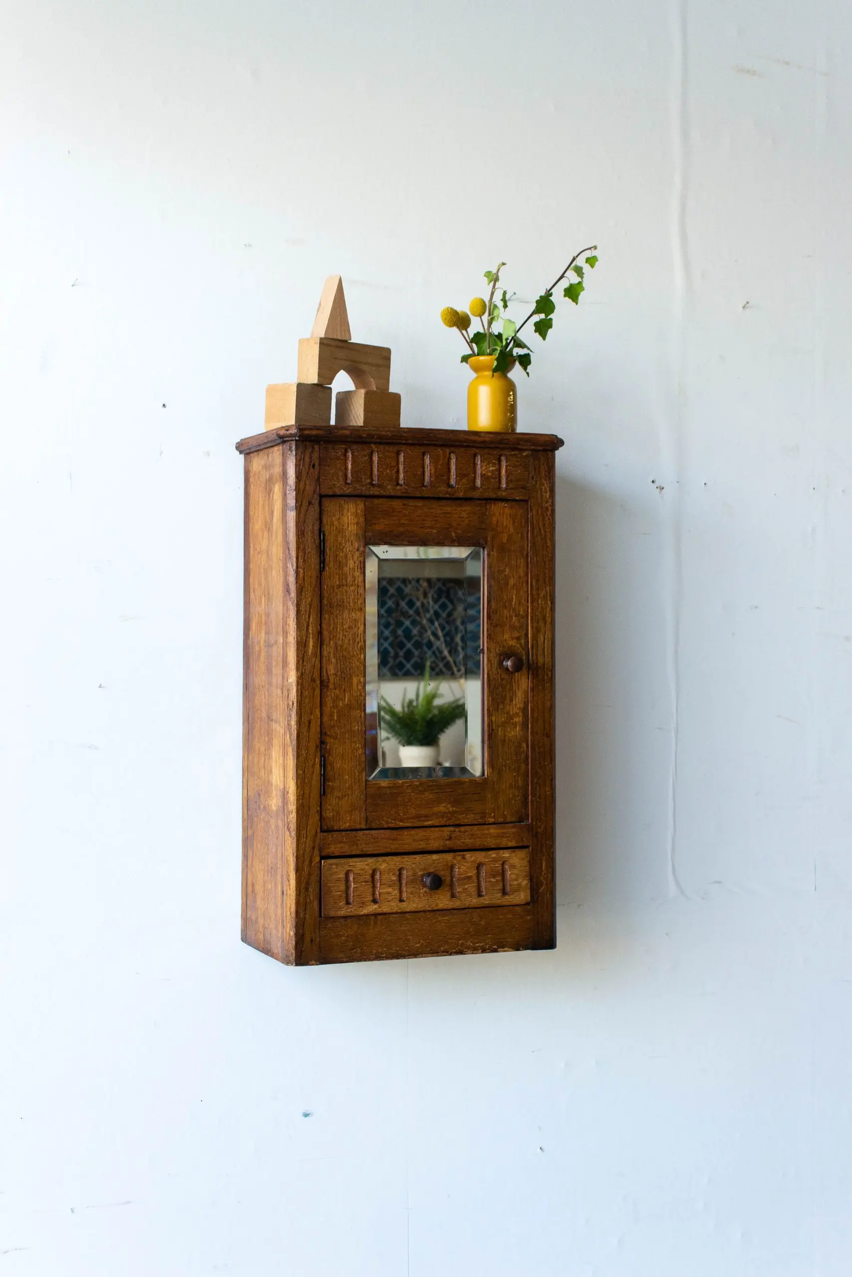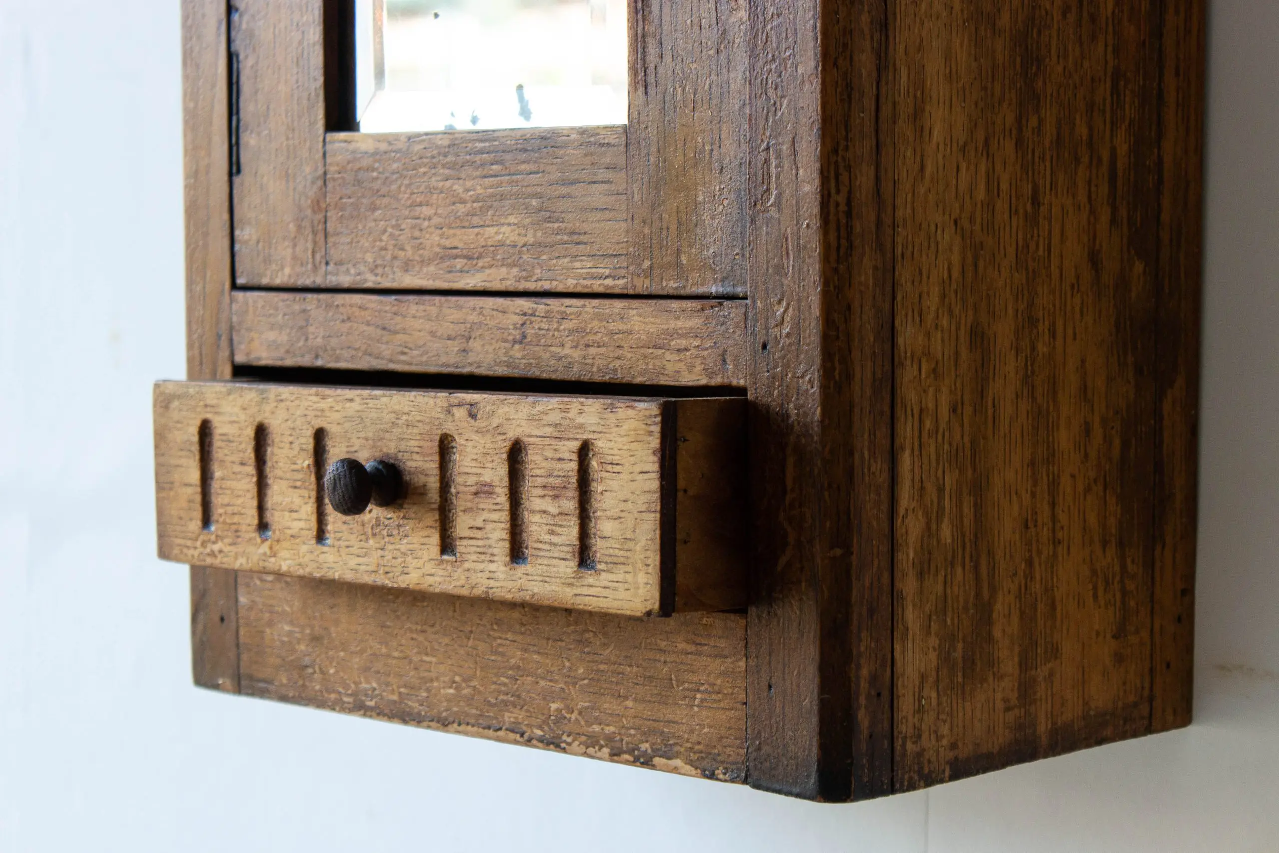 Een prachtig, oud spiegelkastje uit Frankrijk. We hebben het lieve kastje met laatje goed schoongemaakt en helemaal nagelopen. Ook het ophangsysteem is goed gecheckt. Wat ons betreft een geweldig kastje voor aan de muur op een baby- of kinderkamer. Klaar voor gebruik.