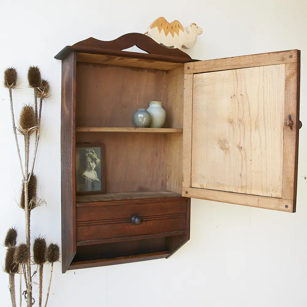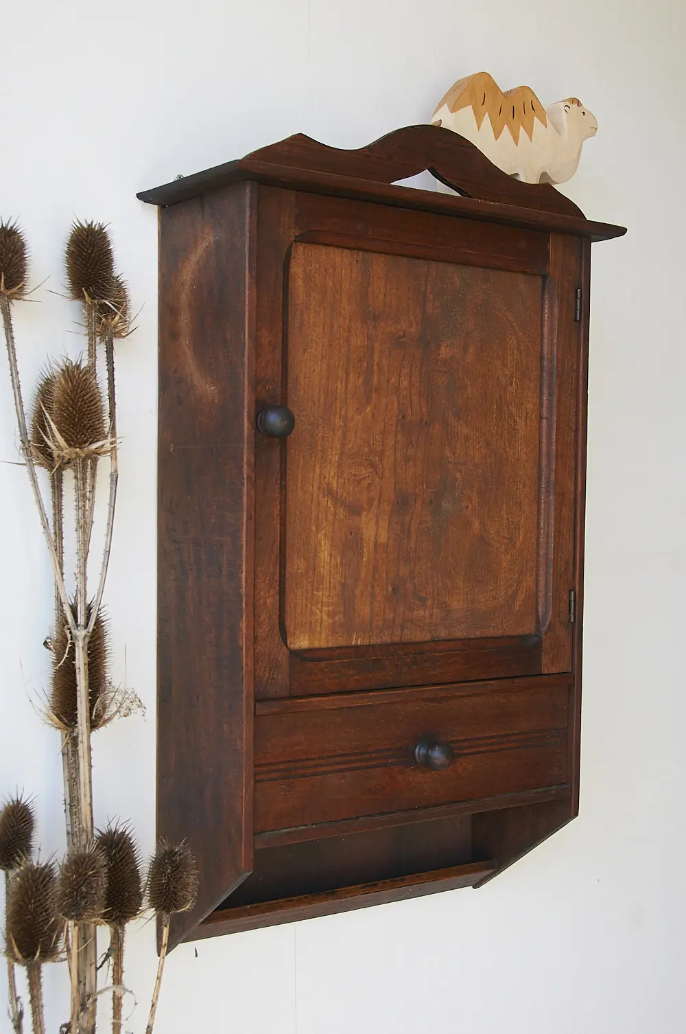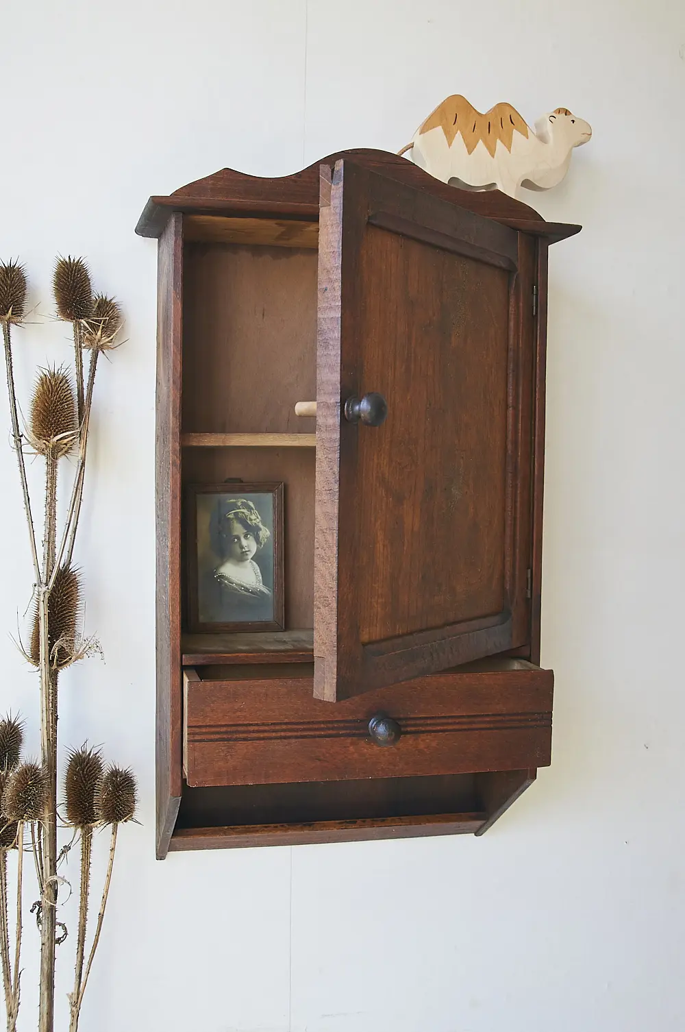 Een leuk wandkastje uit Frankrijk met houten knopjes. Wij hebben het lieve kastje met laatje goed schoongemaakt, nagelopen en behandeld tegen houtworm. Een geweldig kastje voor aan de muur op een baby- of kinderkamer.