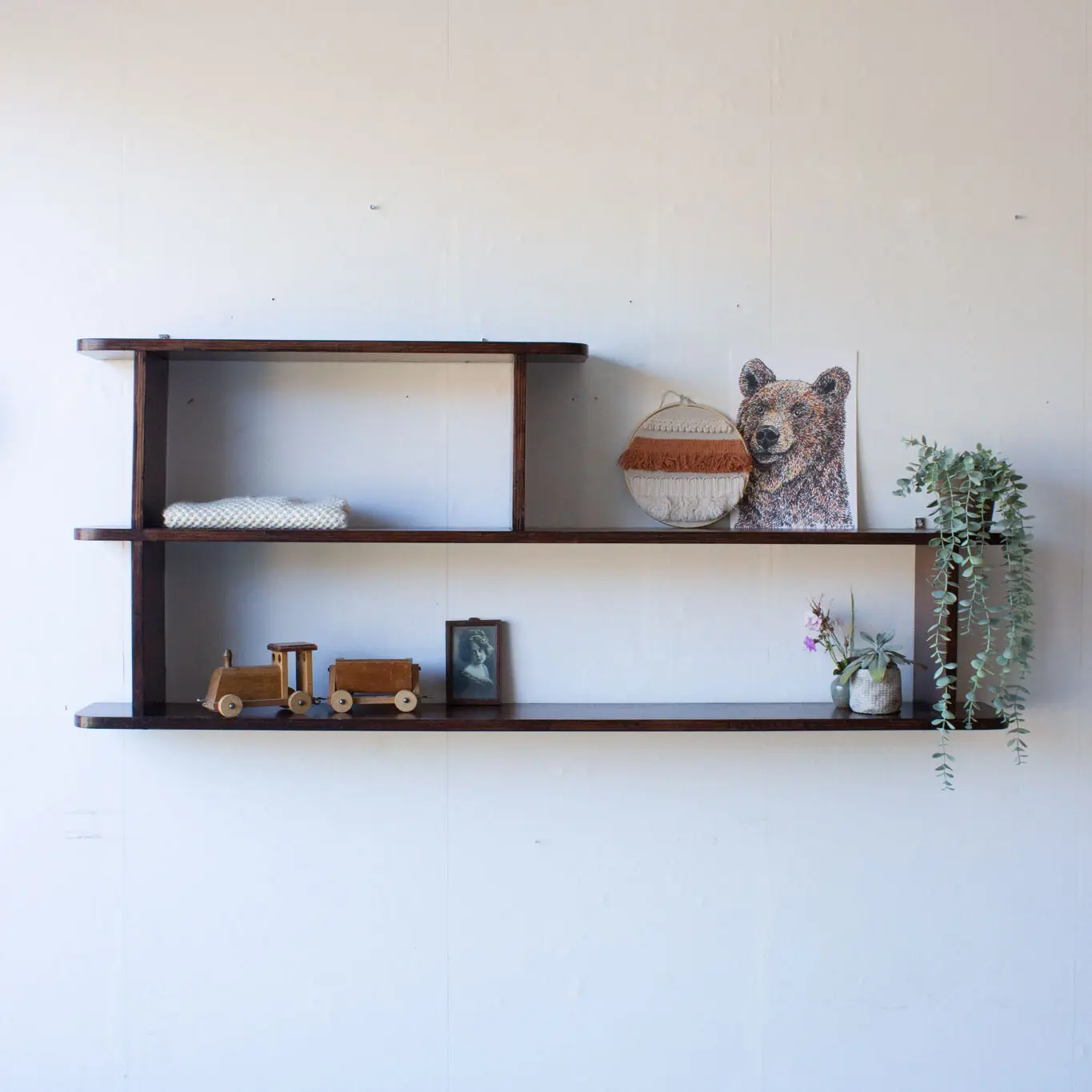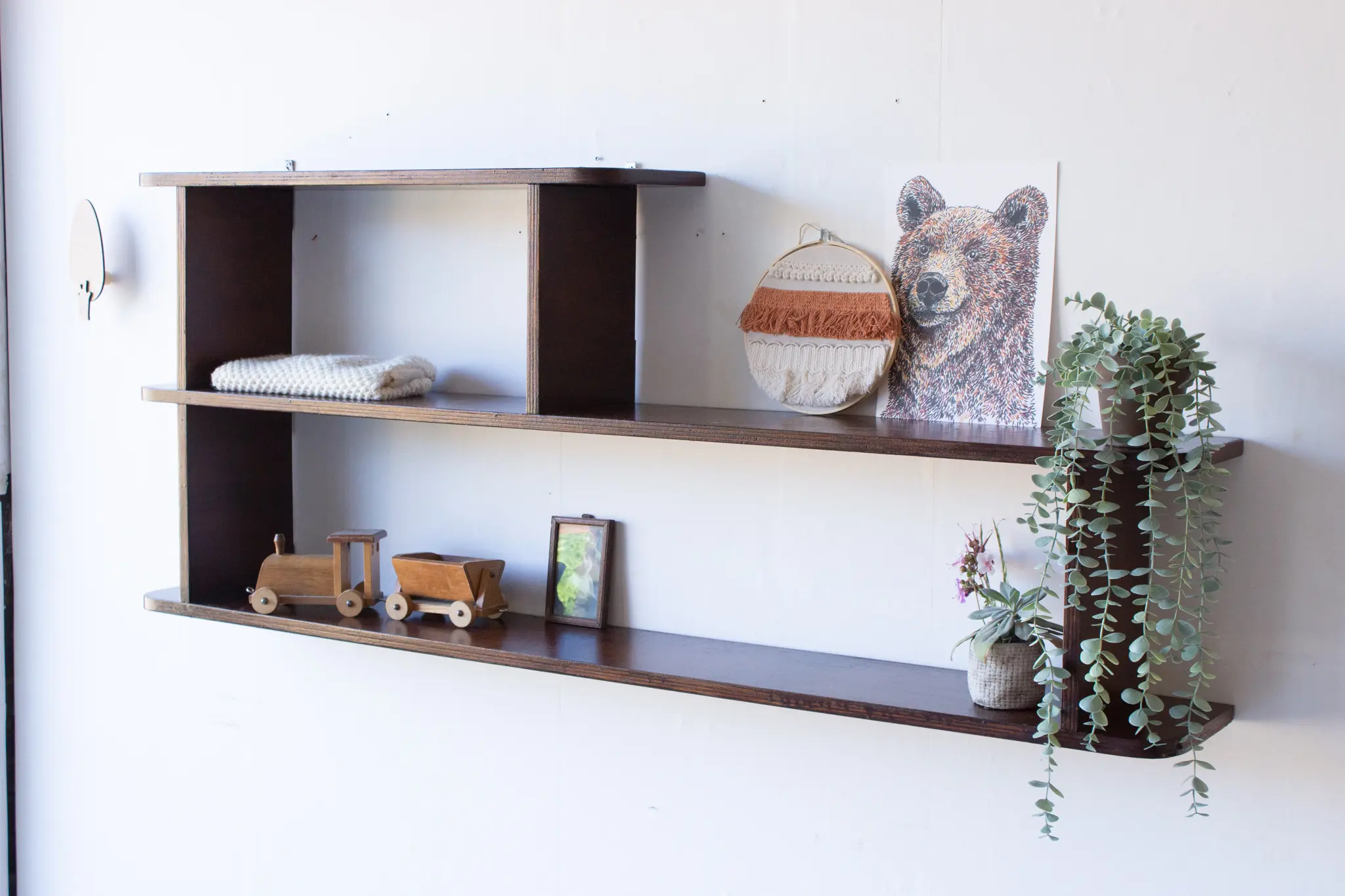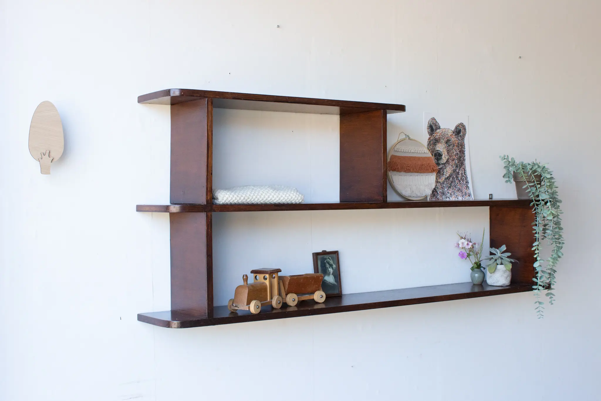 Wat een leuke wandplank! Heel leuk om boekjes, plantjes en andere leuke spulletjes op te zetten. En prachtig, die ronde hoeken.