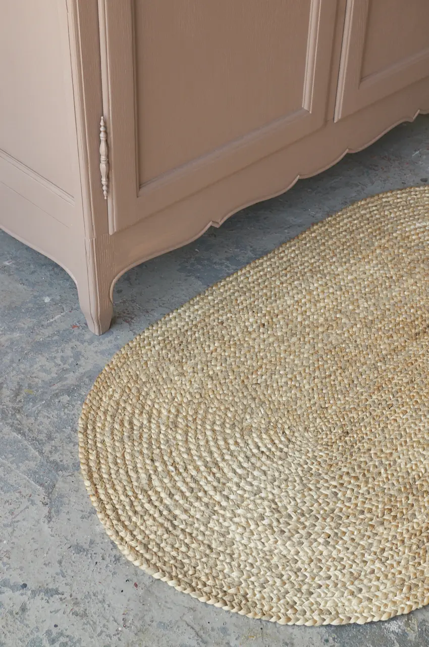 Wat een mooie vorm! De ovale vorm van dit vloerkleed maakt hem net wat specialer en speelser dan een rechthoekig kleed. Door zijn warme, natuurlijke en neutrale kleur past hij in elke kamer! Hij is gemaakt van stevig jute en gerecycled katoen. Wij kunnen veel plekken in huis verzinnen waar dit vloerkleed mooi zal liggen. Onder de commode, langs het bed of onder de bank. Hij geeft net dat beetje extra sfeer in huis.