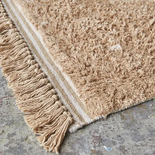 Wat is dit kleed leuk, met onze kleur Saffraan maar ook met beige- of houttinten komt dit kleed goed tot zijn recht. Deze combinatie geeft zoveel sfeer en karakter. Wij vinden dit kleed nog leuker door de subtiele stippen en de kwastjes aan de zijkant. Daarnaast is hij heerlijk zacht, fijn om op te staan onder de commode van je kindje. Dit kleed is gemaakt van zacht gerecycled katoen en kun je met de hand wassen.
