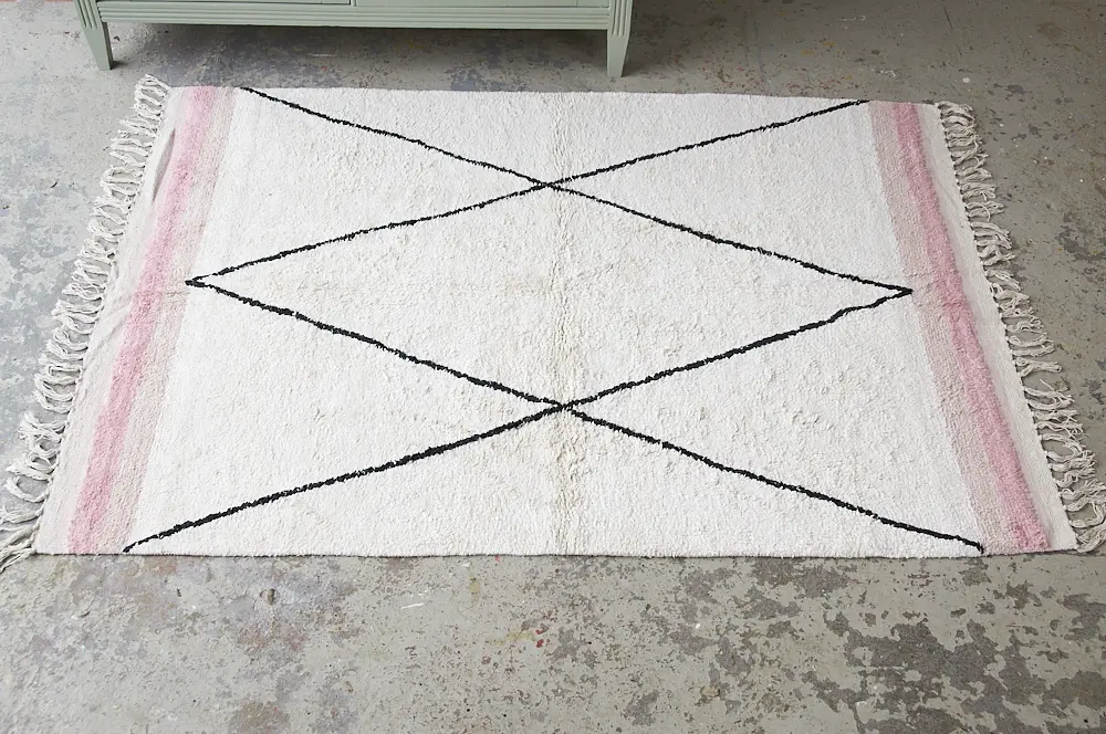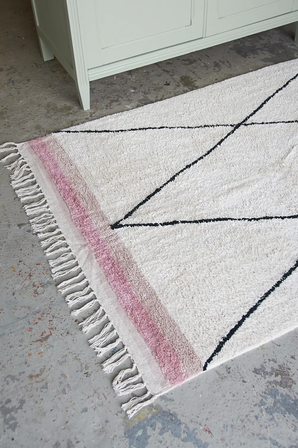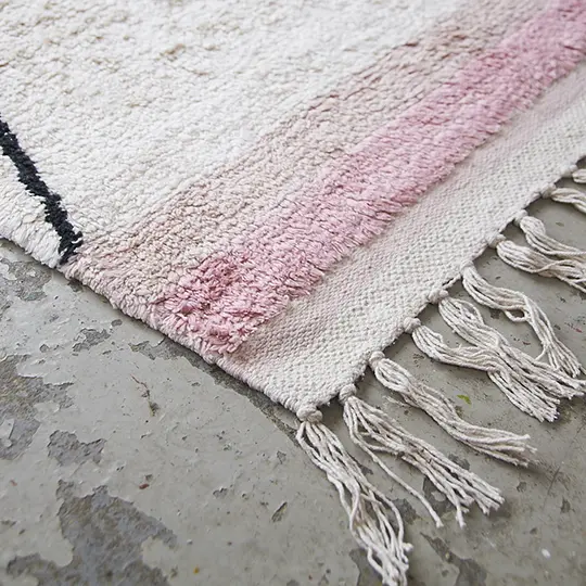Dit kleed is door zijn formaat, print en kleuren zo leuk voor in het hele huis! Of je hem nu op de kamer legt van je dochtertje of in de woonkamer onder de bank. Wat ons betreft heeft elk huis dit mooie kleed nodig! Door de speelse franjes en de roze details is het alleen al een mooi kleed om naar te kijken. En hij is gemaakt van 100% gerecycled katoen, dus heel lekker zacht voor je voeten. Je kunt hem ook gewoon wassen met de hand, zo handig!