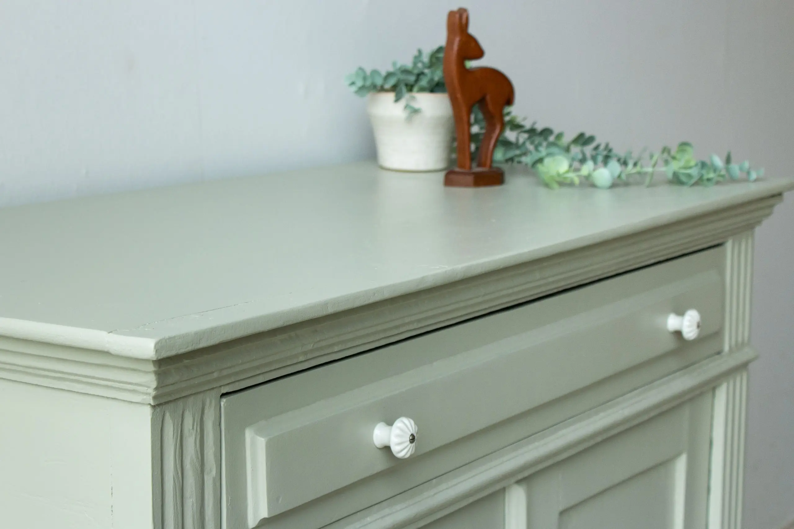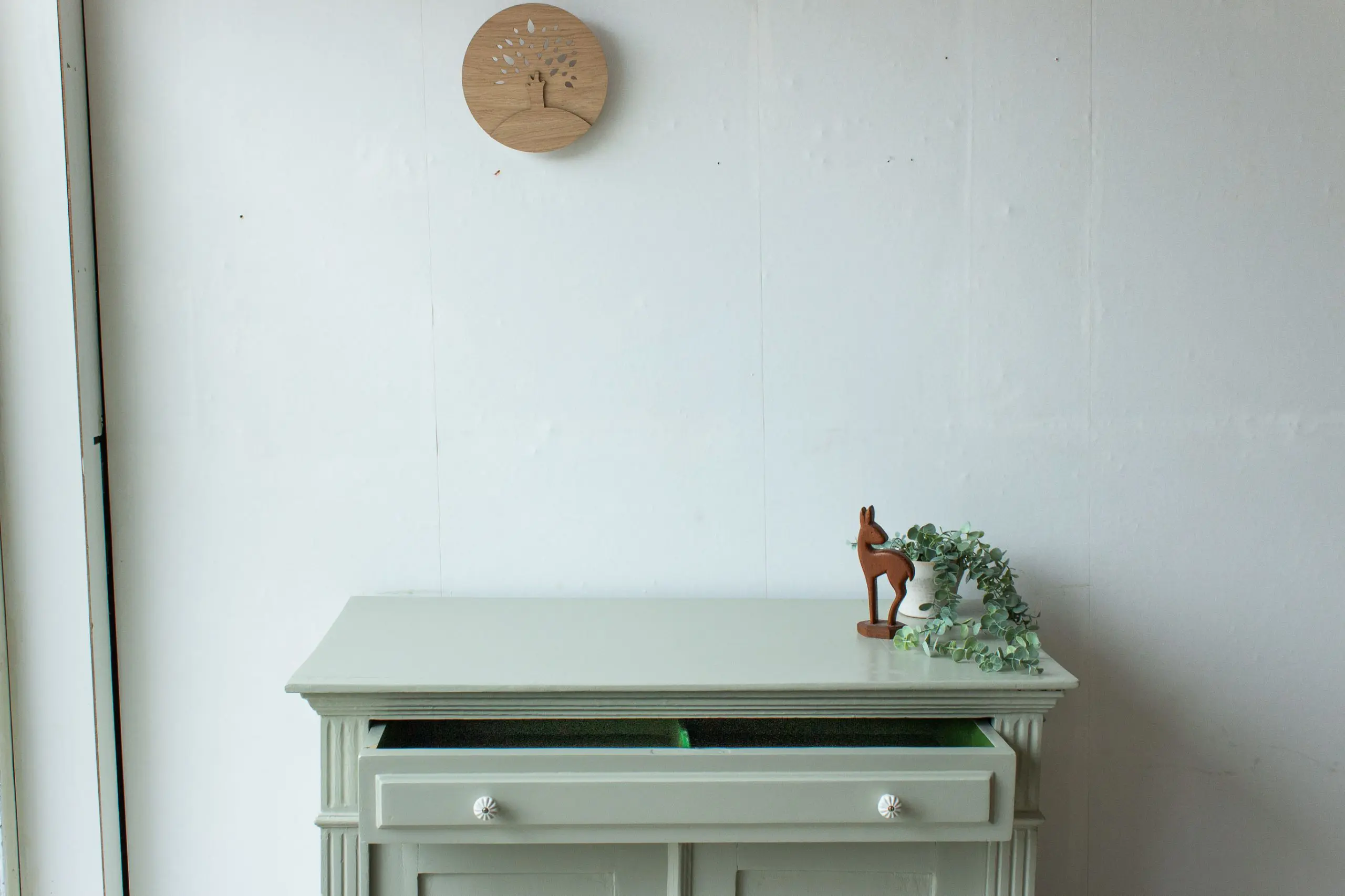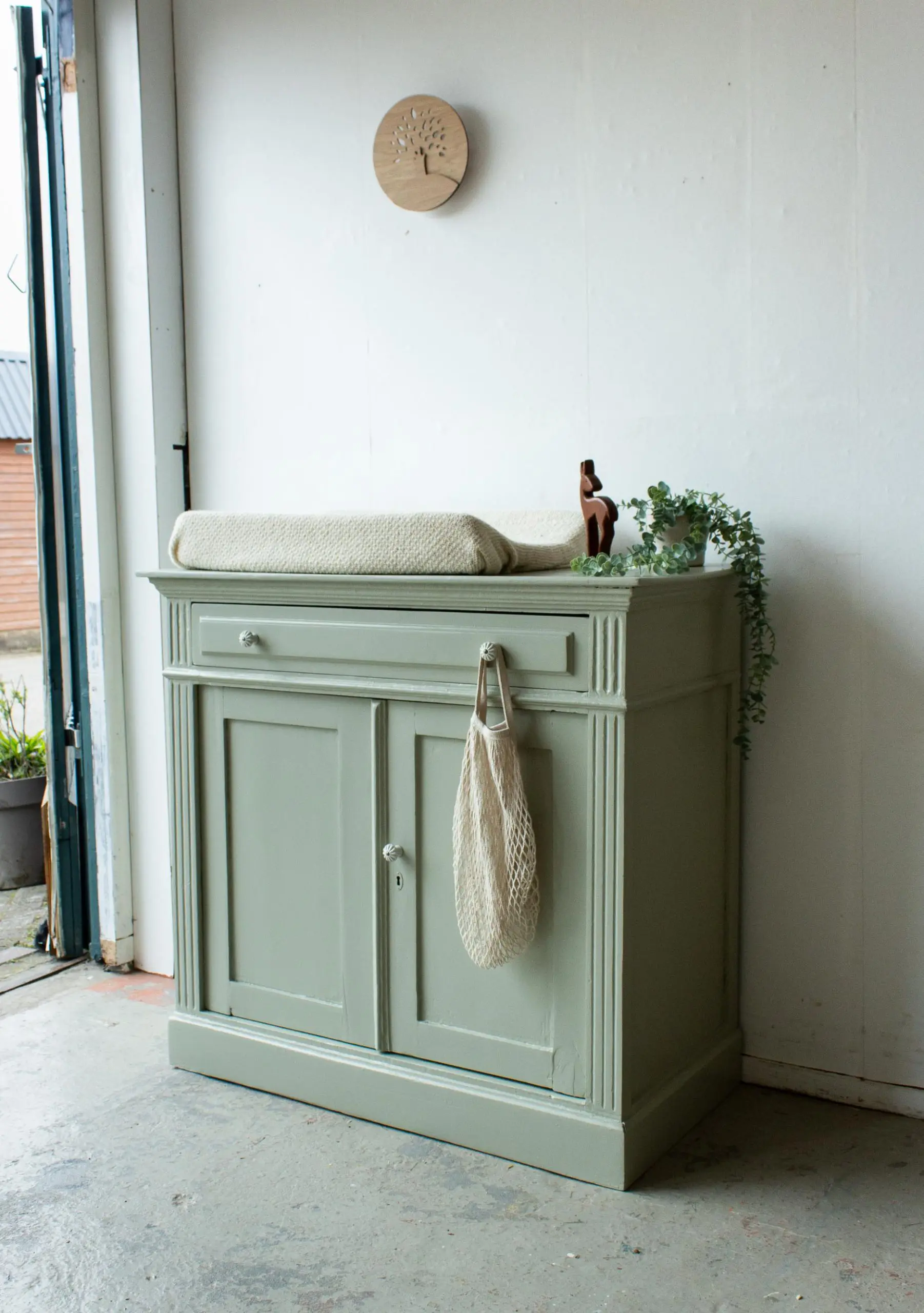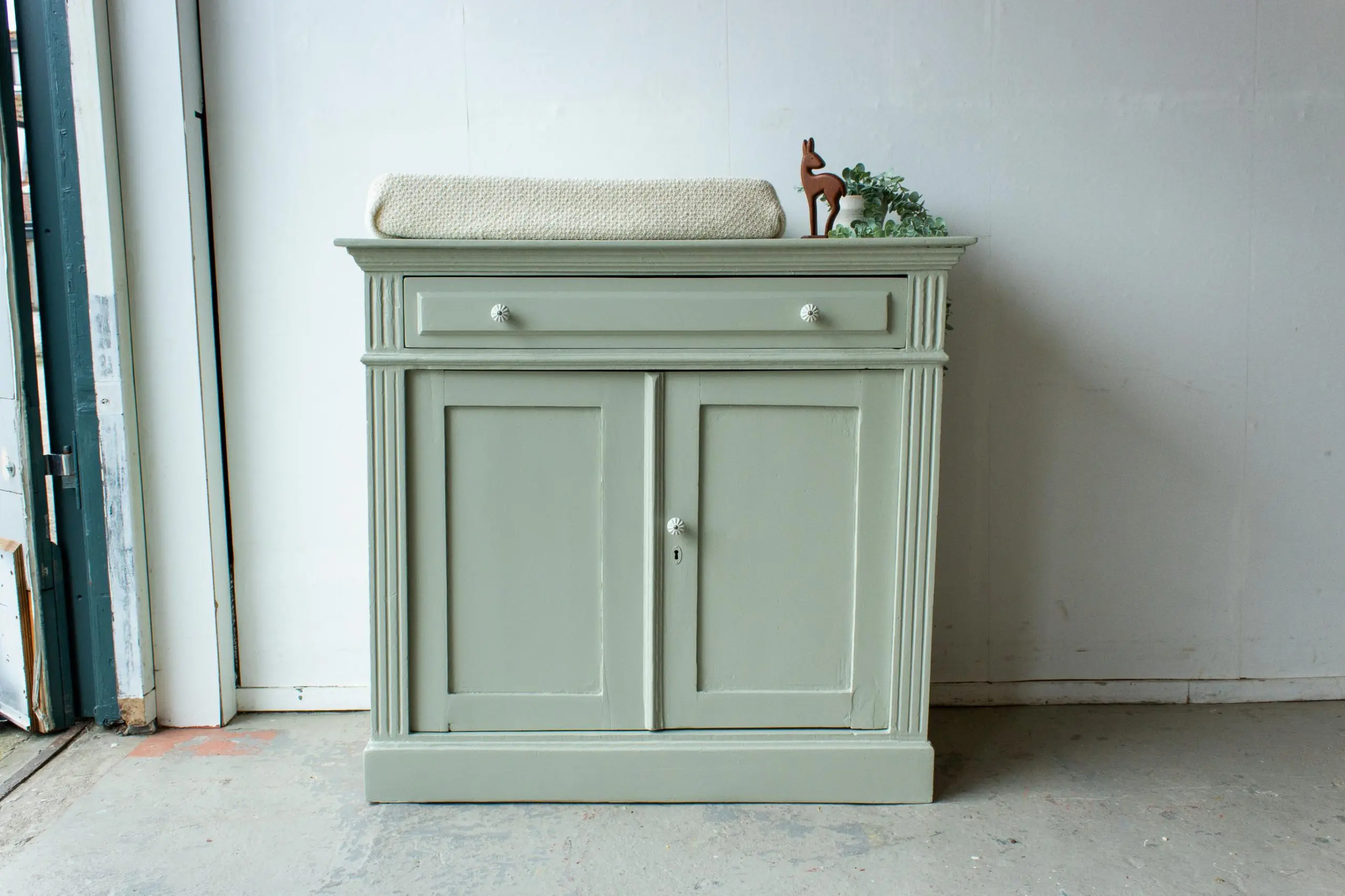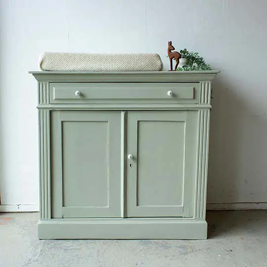 Zachtgroene ruime vintage commode