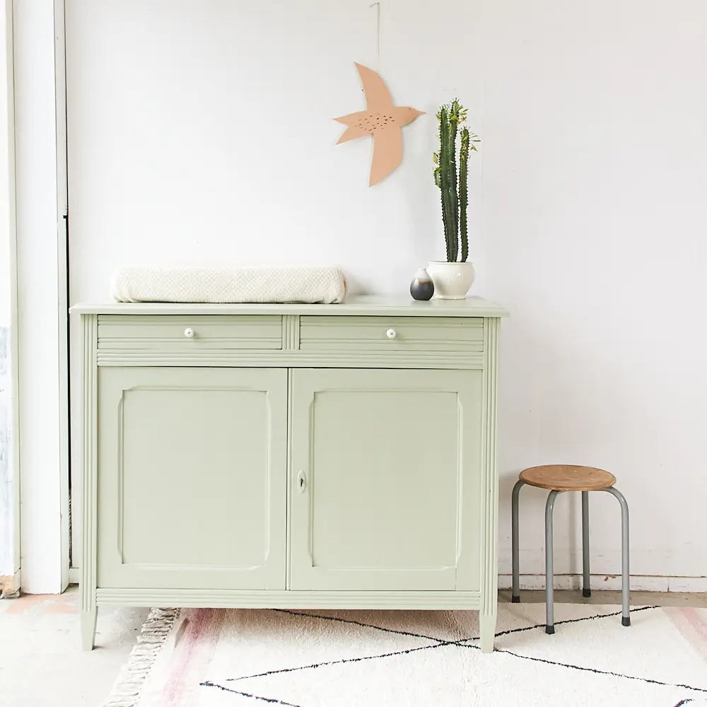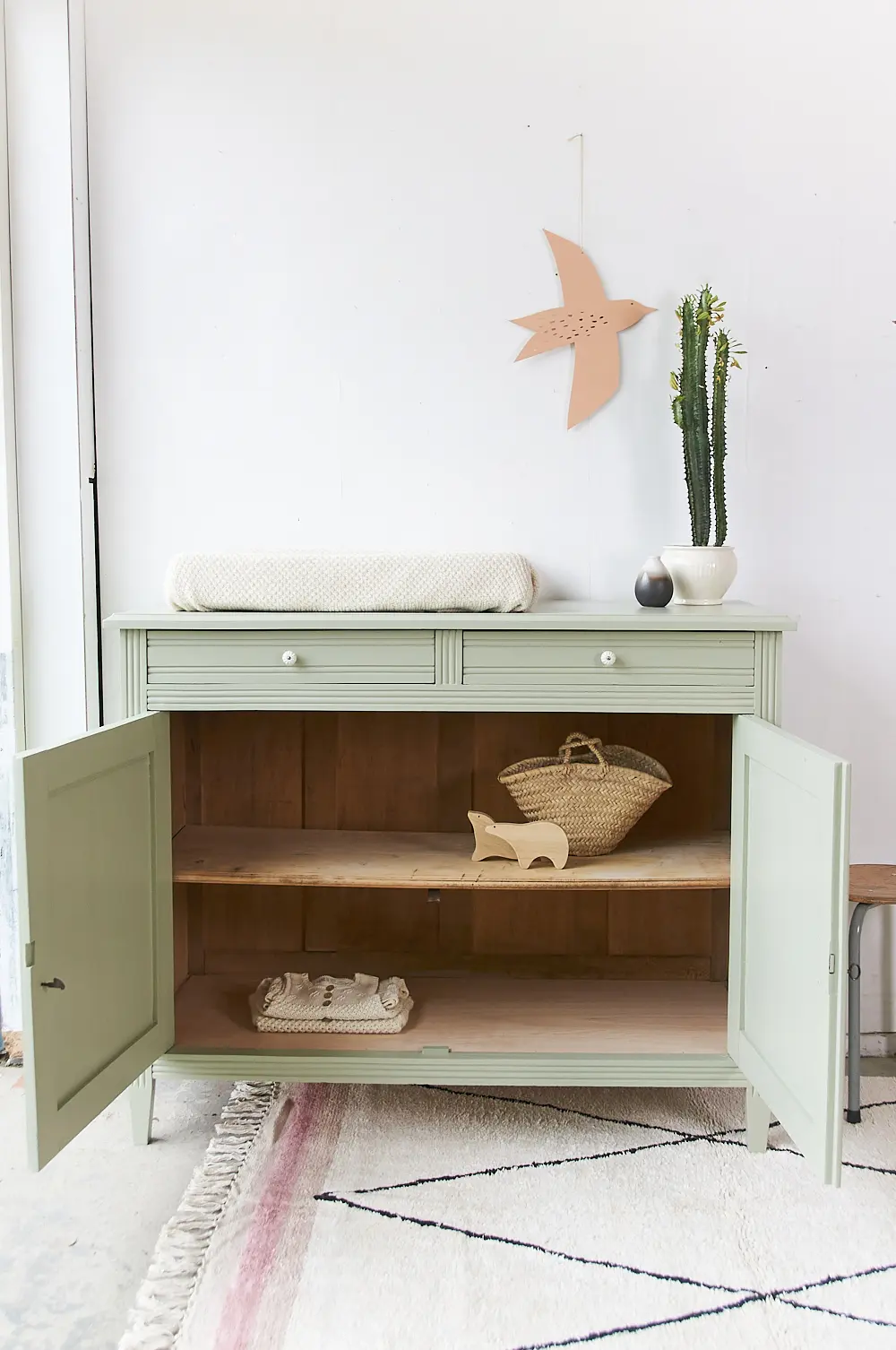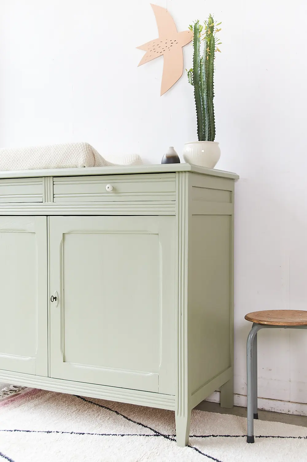 Wat een prachtige commode. Zo degelijk en stevig gebouwd! De commode komt uit midden Frankrijk, vlak onder Limoges. We hebben hem daar ingekocht en hier naar Nederland laten vervoeren. Hier is hij na het zandstralen grondig schoongemaakt en behandeld tegen houtworm. De deurtjes en lades gaan weer soepel open en dicht. We hebben hem voorzien van een nieuwe bodem, de plank hebben we origineel gehouden, wel netjes glad geschuurd. We hebben er voor gekozen hem in deze zachte groene kleur te schilderen en hem af te werken met porseleinen knopjes. Het linker deurtje sluit met een haakje en het rechter deurtje sluit door middel van de goed werkende sleutel. Deze klassieke commode is weer helemaal klaar voor gebruik!
