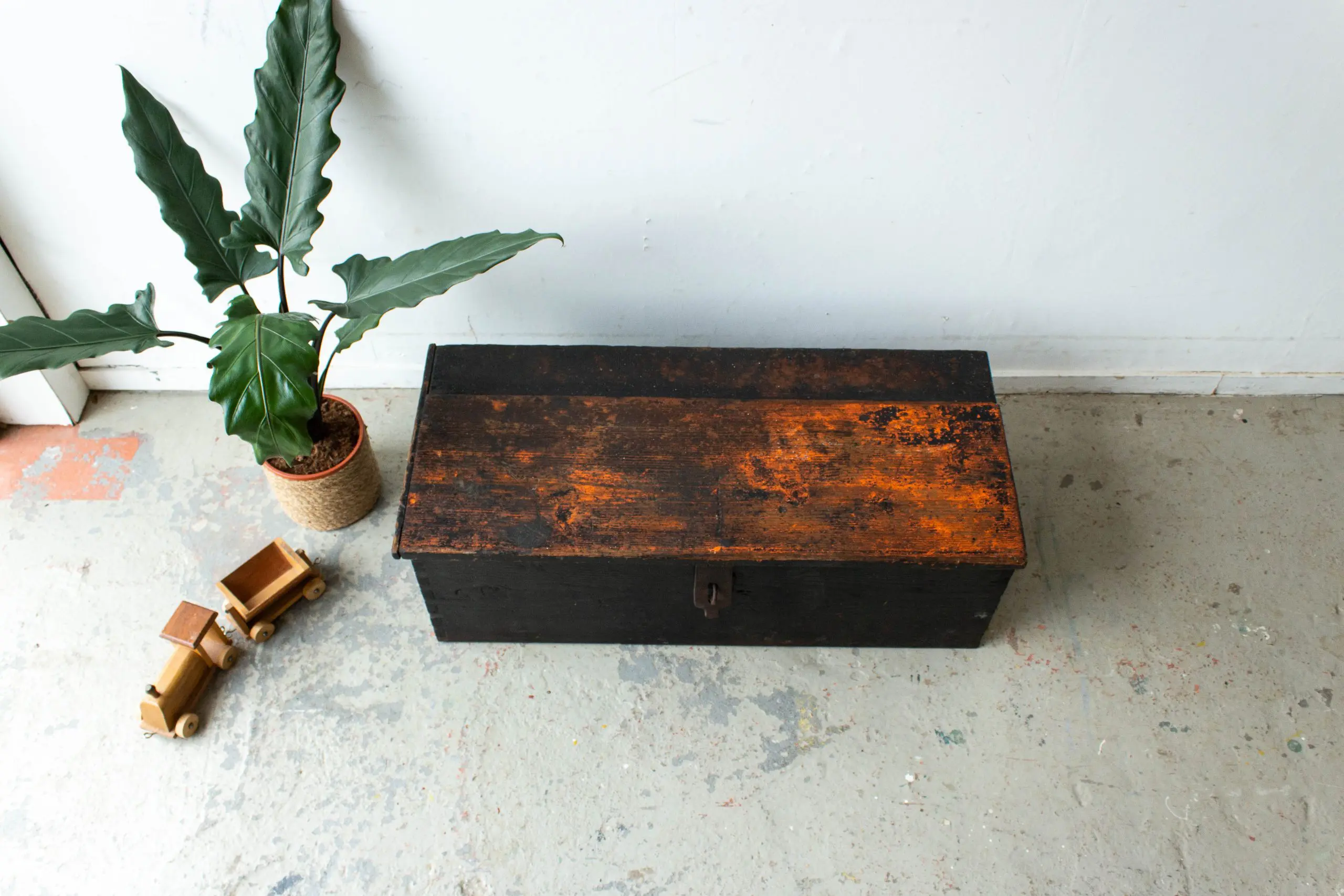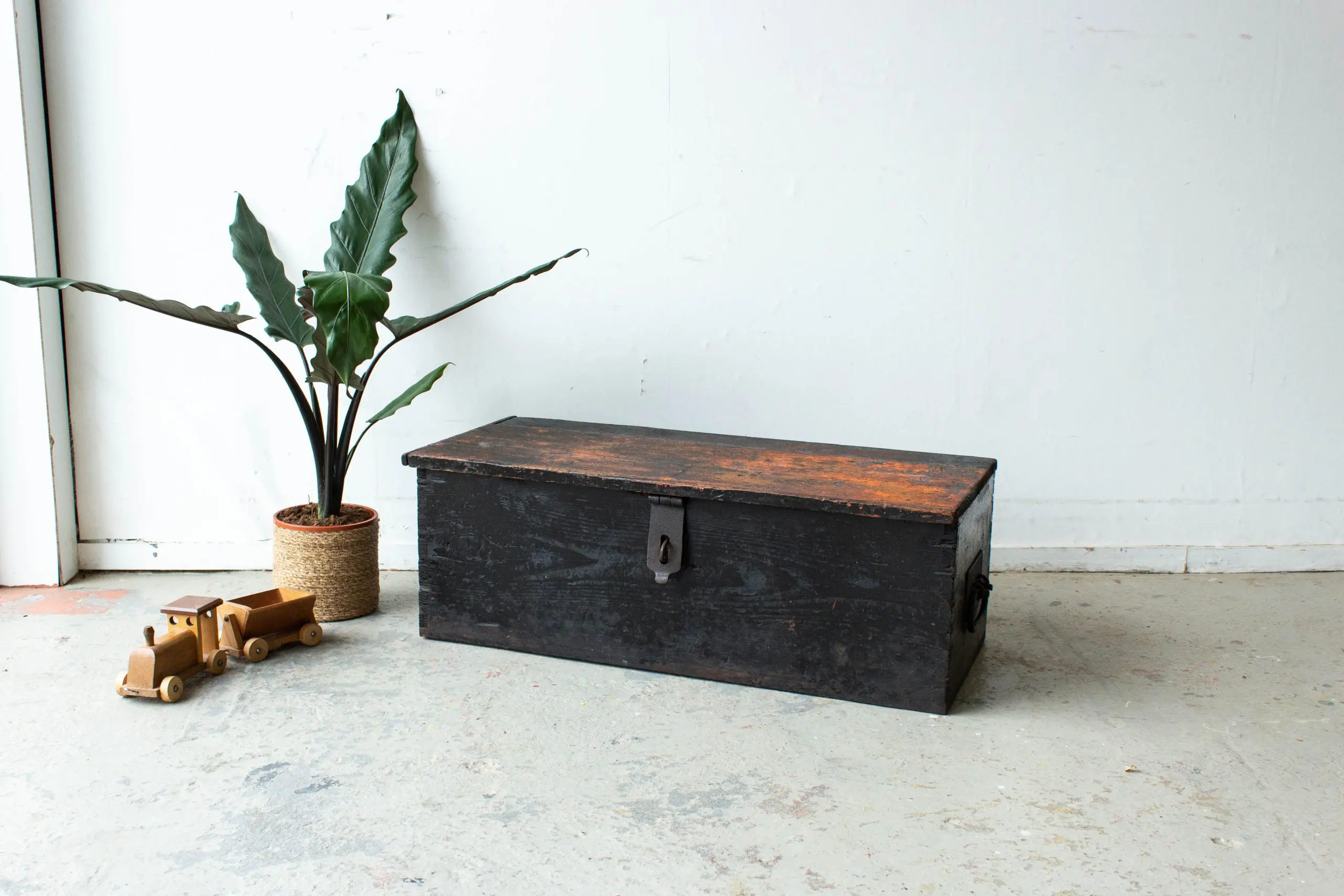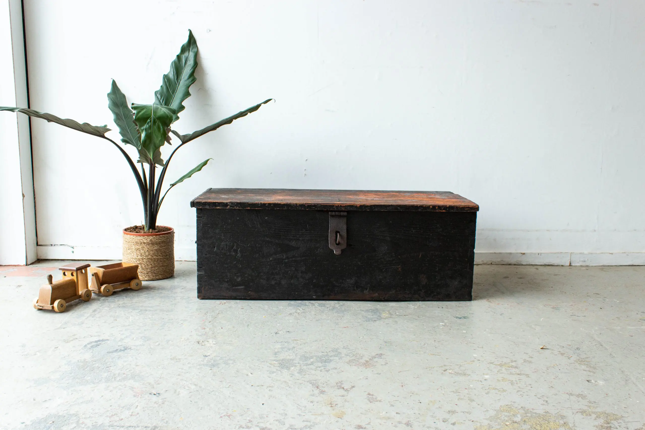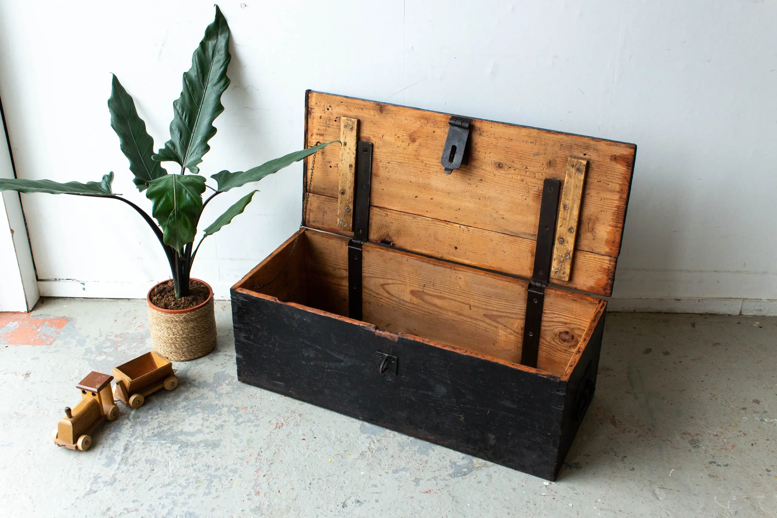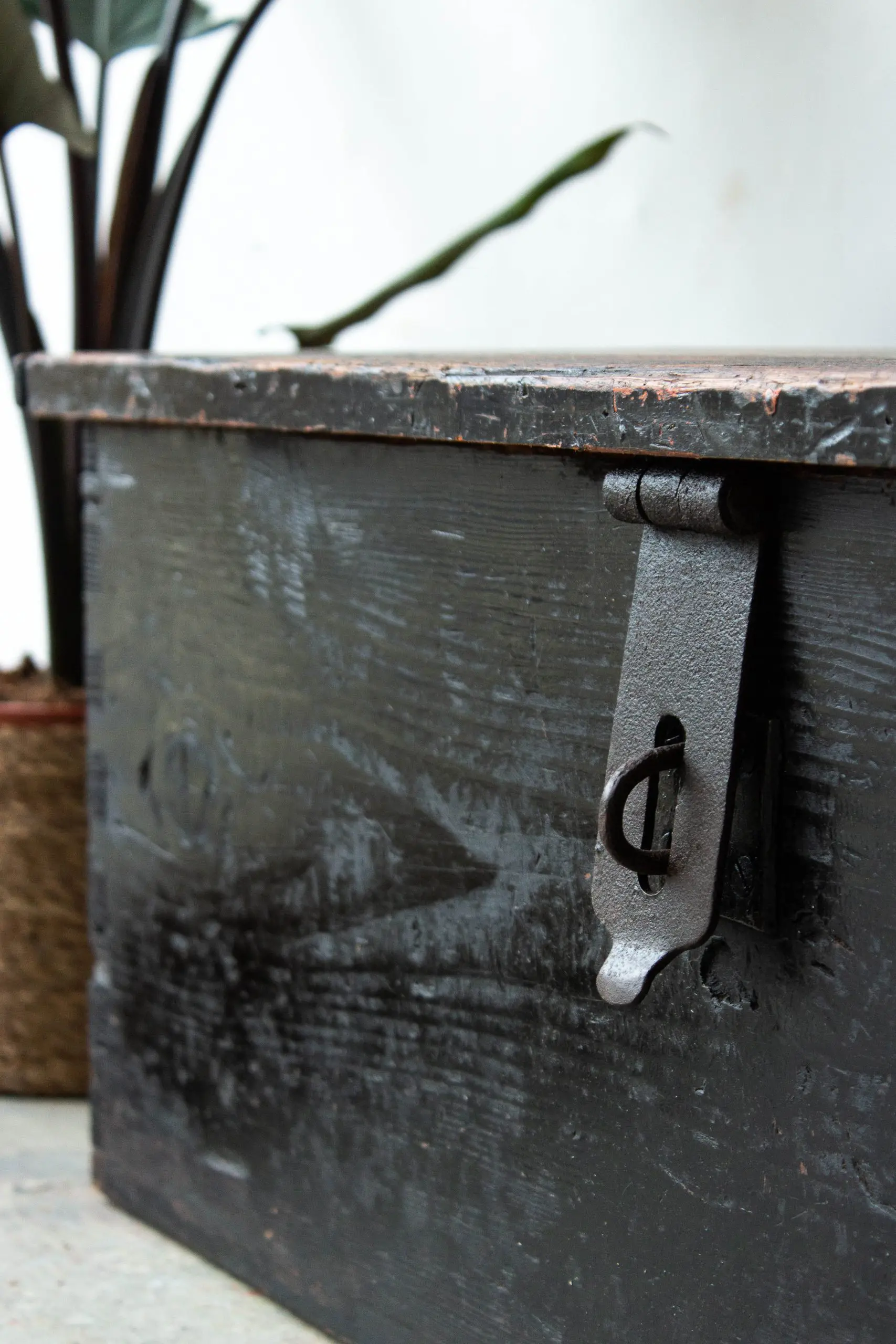 Zwarte vintage dekenkist